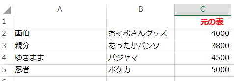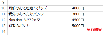 | 10行目 | 画伯のおそ松さんグッズ | 4000円 |